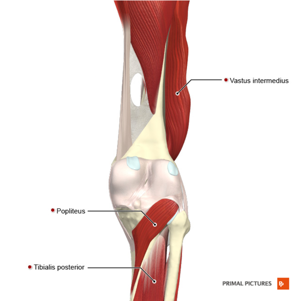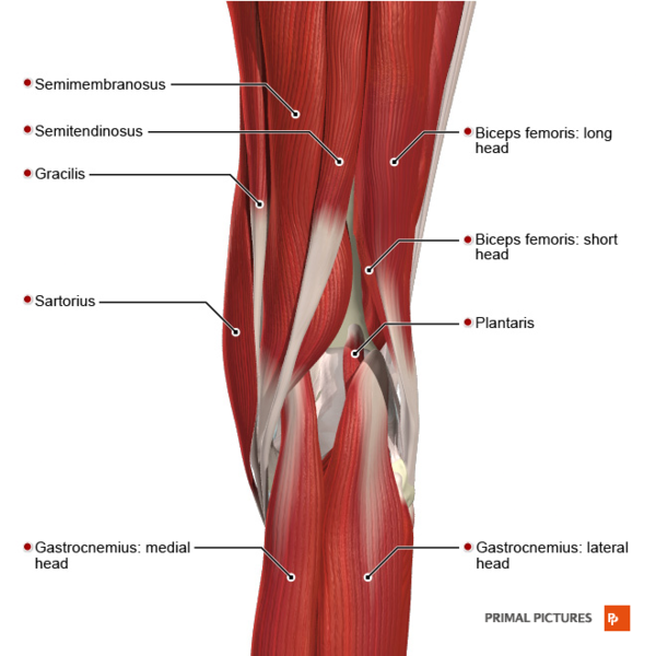 | Подколенная мышца | Латеральный мыщелок бедренной кости и латеральный мениск коленного сустава. | Проксимальная часть большеберцовой кости, непосредственно выше места начала камбаловидной мышцы | Большеберцовый нерв | Латеральная ротация бедренной кости относительно большеберцовой кости с целью разблокирования колена и обеспечения возможности сгибания колена |
