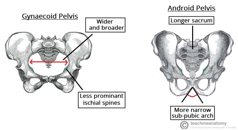 Существует разница в строении таза у биологических мужчин и биологических женщин (также известного как андроидный таз (мужской) и гинекойдный таз (женский)).[7]