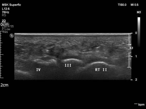 - Исследованием выбора для метатарзалгии благодаря его высокому разрешению, демонстрирующему анатомию сесамовидных костей, подошвенного гленосезамовидного аппарата и прилегающих сухожилий сгибателей, абдукторов и аддукторов.[20]