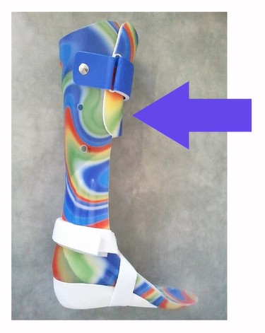 Шарнирный AFO изготовлен с подвижной частью, или шарниром, который крепится к голеностопному суставу. Он разработан для того, чтобы позволять движение в голеностопном суставе, но все же предлагает коррекцию, которую обеспечивает система трехточечного давления. Шарнирный AFO - это хороший инструмент для оптимизации походки.