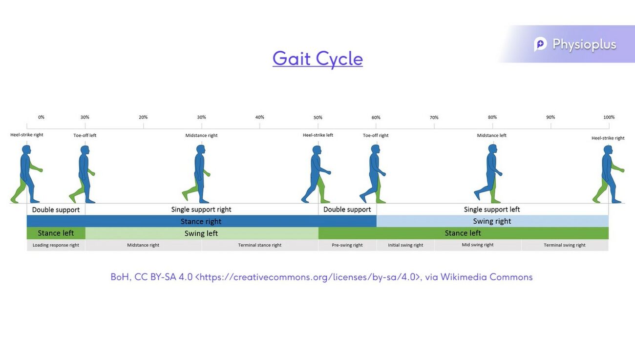 Когда нормальный цикл походки нарушается патологическим состоянием, возникают общие осложнения. Они варьируются от человека к человеку, но часто можно обнаружить закономерности. На изображениях ниже показан нормальный цикл походки и четыре патологических осложнения.