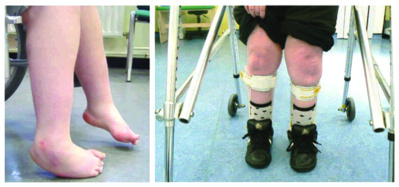 - Прыгающая походка: существует передний наклон таза и поясничный лордоз, бедро и колено согнуты с эквиновым положением стопы.