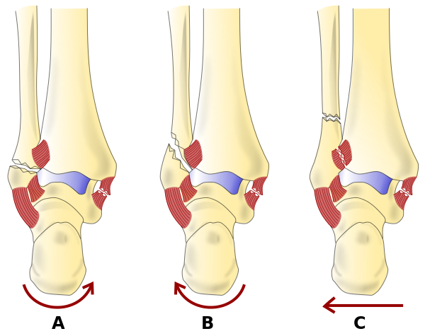 Переломы лодыжки классифицируются по системе классификации Даниса-Вебера[5]