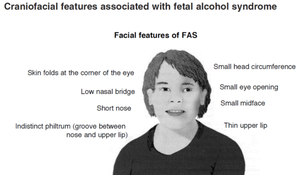 - ↑ 3.0 3.1 3.2 3.3 3.4 Vorgias D, Bernstein B. Фетальный алкогольный синдром. StatPearls [Интернет]. 2020 Авг 23.