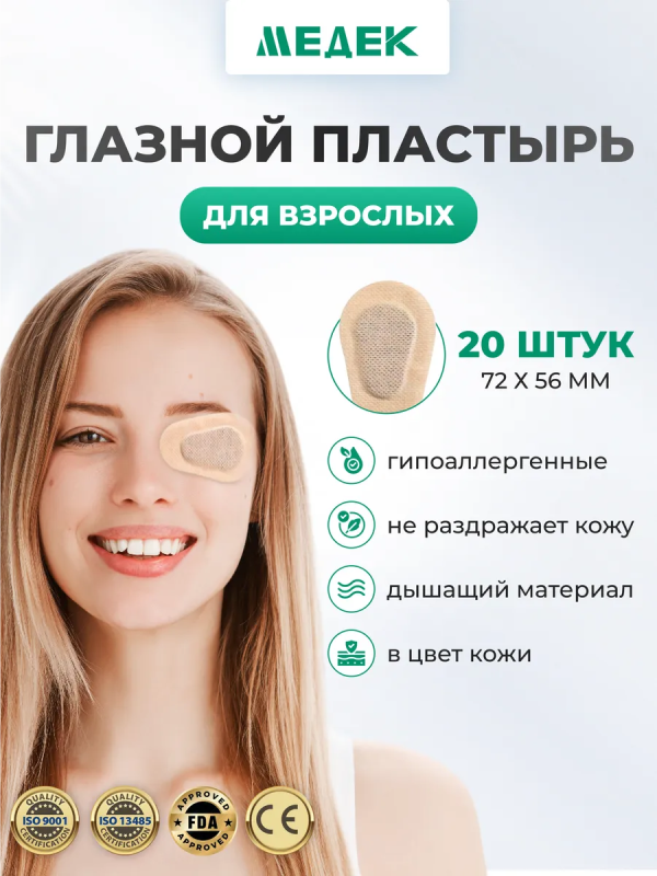 В наборе водонепроницаемые пластыри на глаз для взрослых Медек выгоднее на 30% за счет количества штук в упаковке и высокого качества материала.
