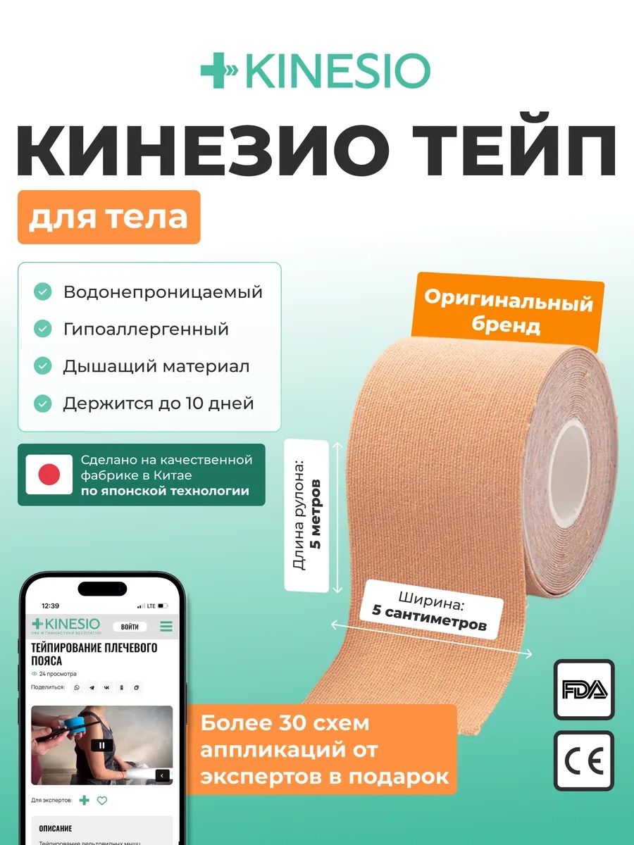Кинезиотейп kinesio разработан специально для телесных аппликаций и идеально подходит для различных участков тела, включая ноги, спину, колени и плечи.